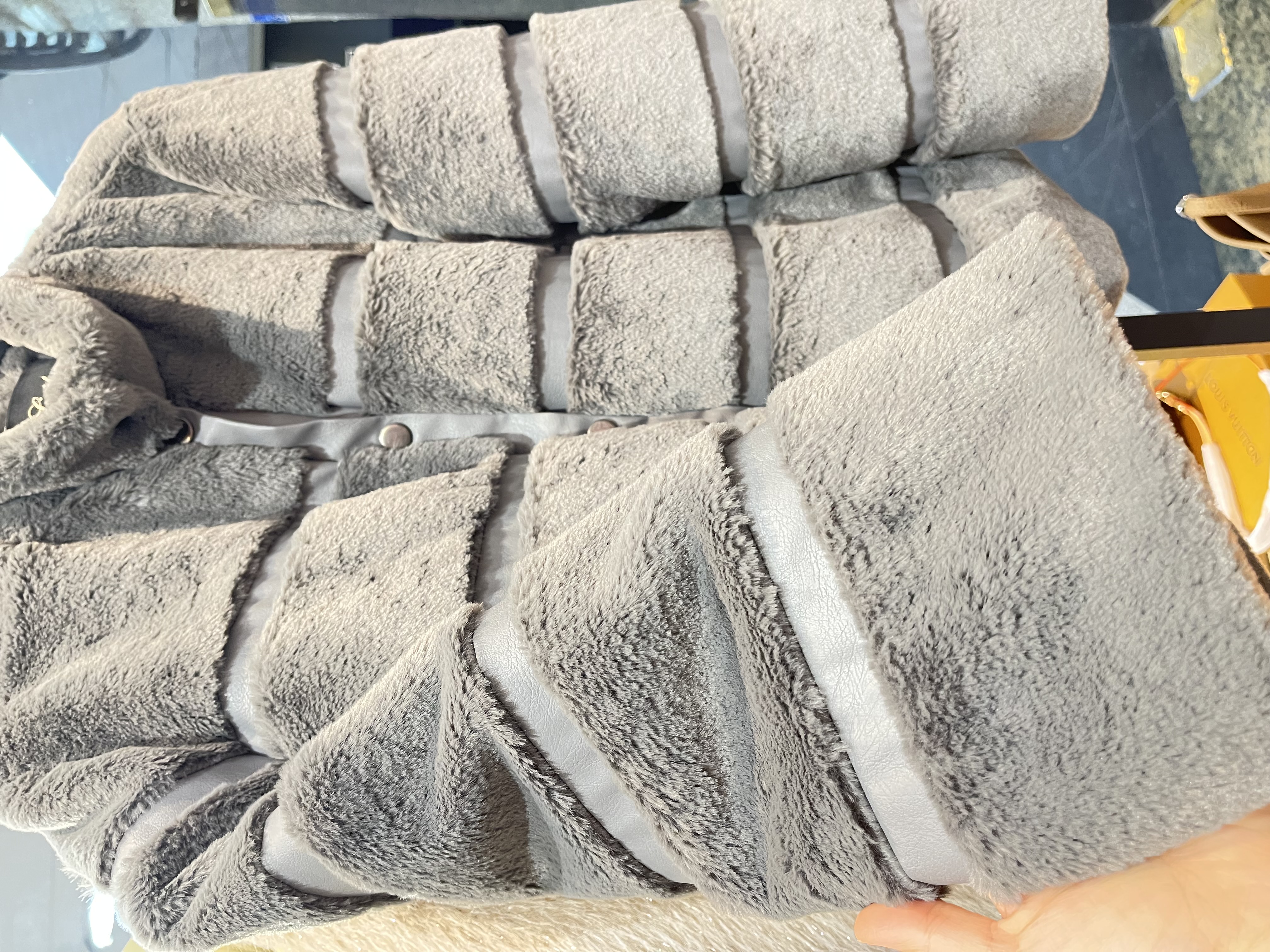 کار سبک و نرم-سایز لارج-کار جلو باز نیست و کل کار دکمه دار هست-آسترکشی شده-کار مناسب زمستان و گرم-ترکیب چرم و خز